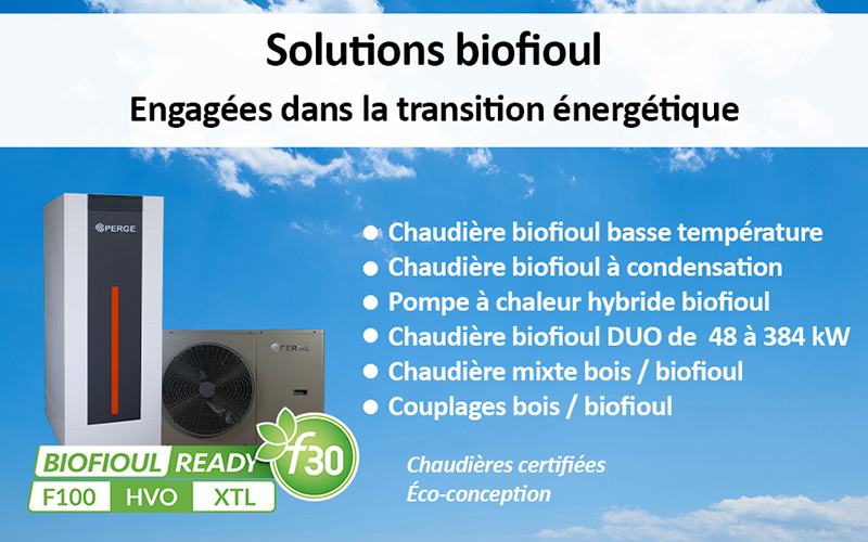 Le fabricant français PERGE , spécialisé dans les solutions de chauffage dans les territoires avec les chaudières Bio Fioul déjà compatibles avec les Bio combustibles du futur F55 et F100.